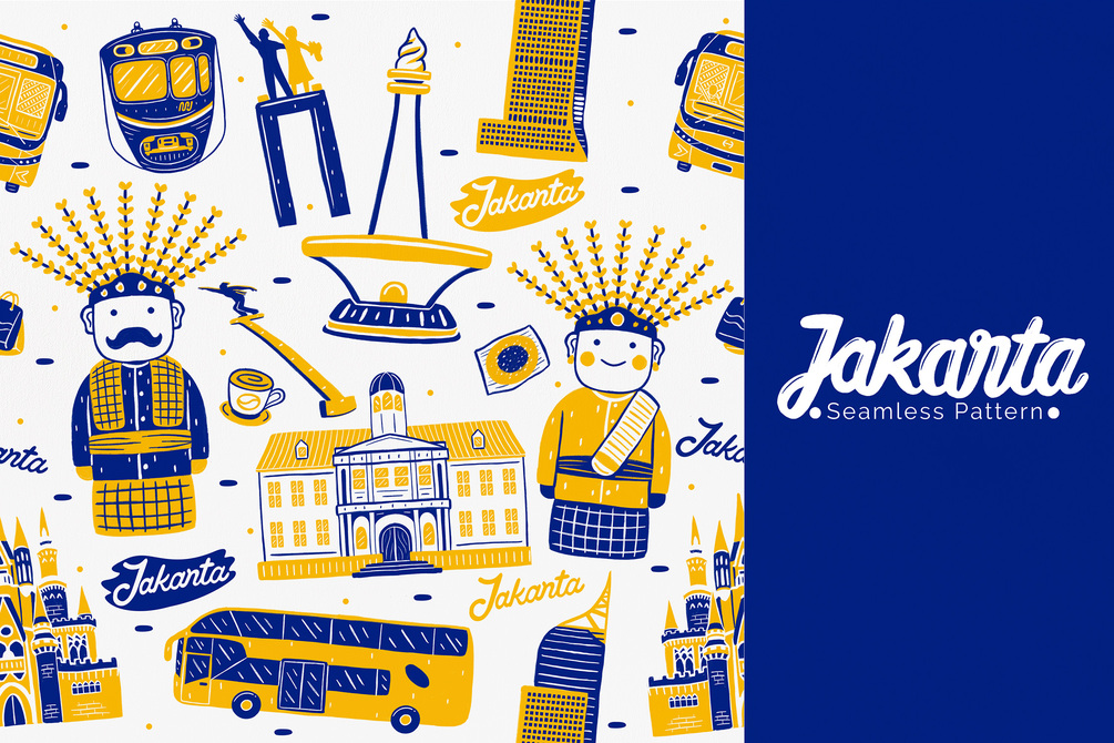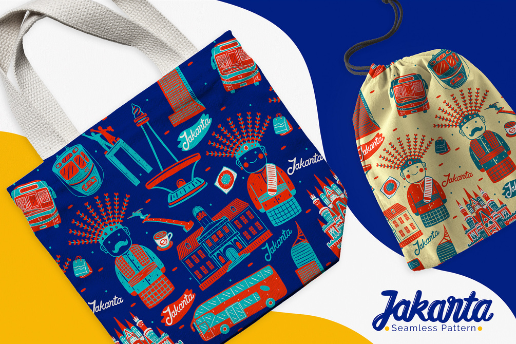 Hi guys! My new product Jakarta Seamless Pattern. You can create countless variations for poster print frame, fabric, clothing, cup, pin button, square pillow, totebag, drawstring/zipper pouch, wallpaper desktop, phone case, etc.